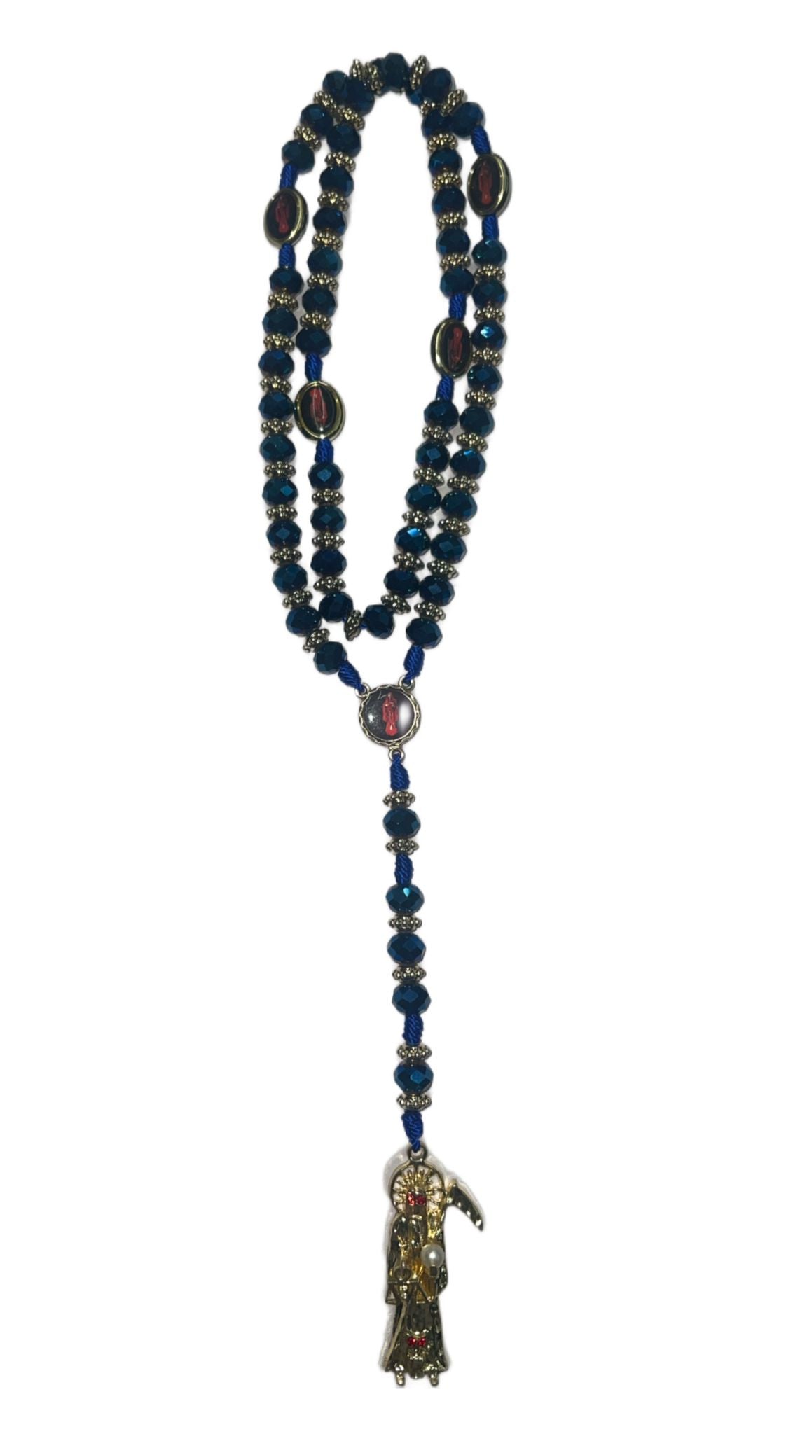 Blue Holy Death's Necklace, Rosary Style – Santa Muerte Protection and Divine Justice