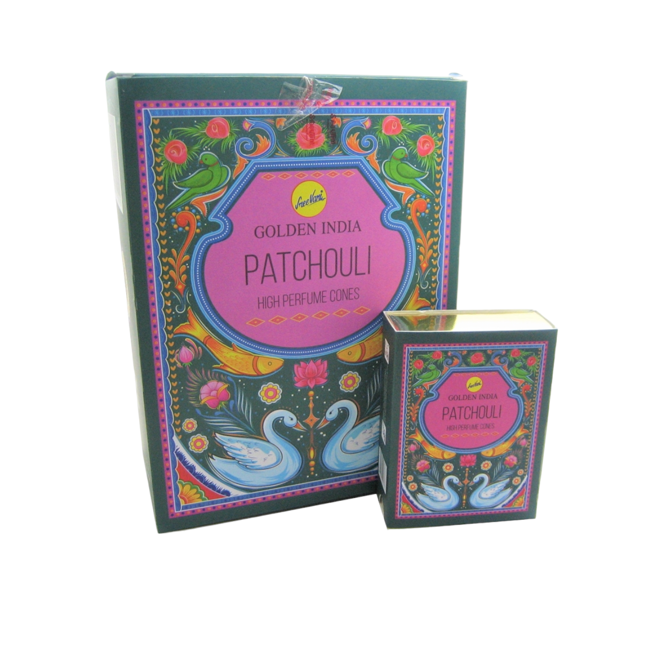 - Premium Golden India Incense Cones in the captivating Patchouli fragrance