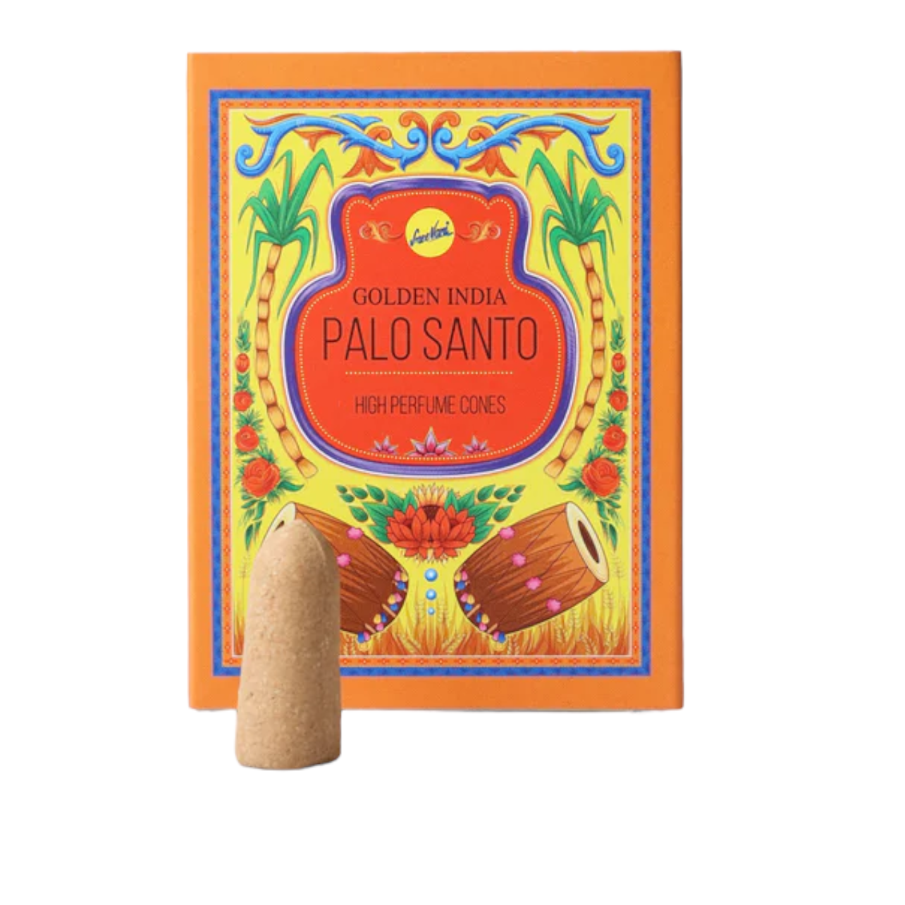 - Premium Golden India Incense Cones infused with the sacred aroma of Palo Santo
