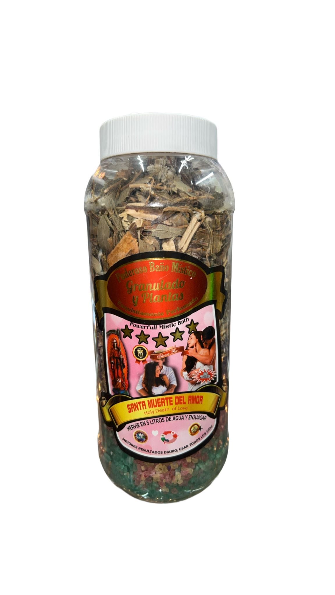 Infuse your life with love and passion using our Holy Death of Love Herbal Bath Salt. This potent blend of natural herbs and salts is designed to invoke the blessings of Santa Muerte for enhancing love, attraction, and emotional connections. Ideal for those seeking to deepen romantic relationships or attract new love into their lives, this herbal bath salt works to purify your aura and invite loving energies.