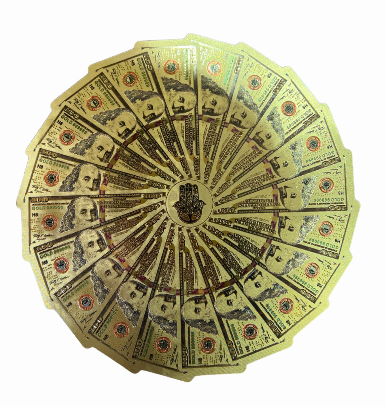 The Lucky Golden Money Energy Circle Talisman is designed to attract prosperity, financial stability, and success. Featuring a golden $100 bill arranged in an energy circle, this talisman symbolizes the continuous flow of abundance and wealth.