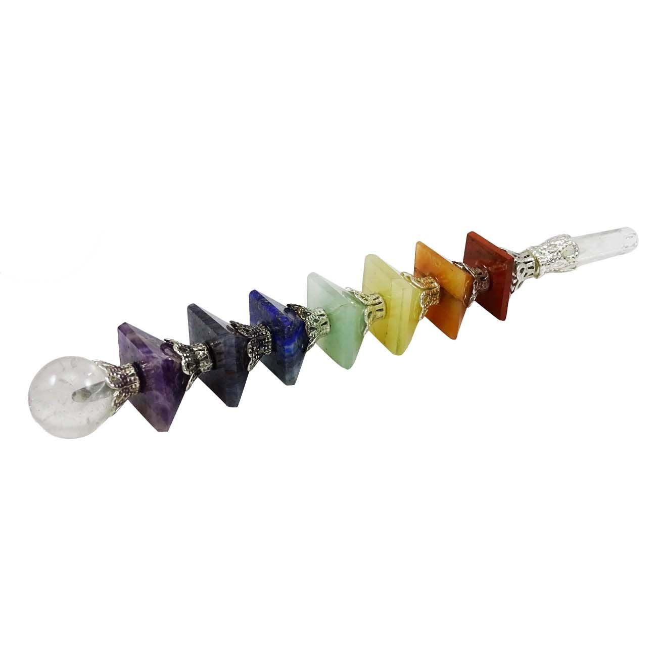 The Swara Agate Pyramid Shape Natural 7 Chakra Stone Wand is a powerful tool for energy healing, chakra alignment, and spiritual growth. This wand features seven distinct stones corresponding to each of the seven chakras, making it perfect for those who practice Reiki or crystal healing. The pyramid shape enhances the flow of energy, helping to clear blockages and balance the body's energetic fields. Whether you're a Reiki practitioner or simply looking to enhance your healing practice, this wand helps to channel and amplify energy for deep emotional and physical healing.