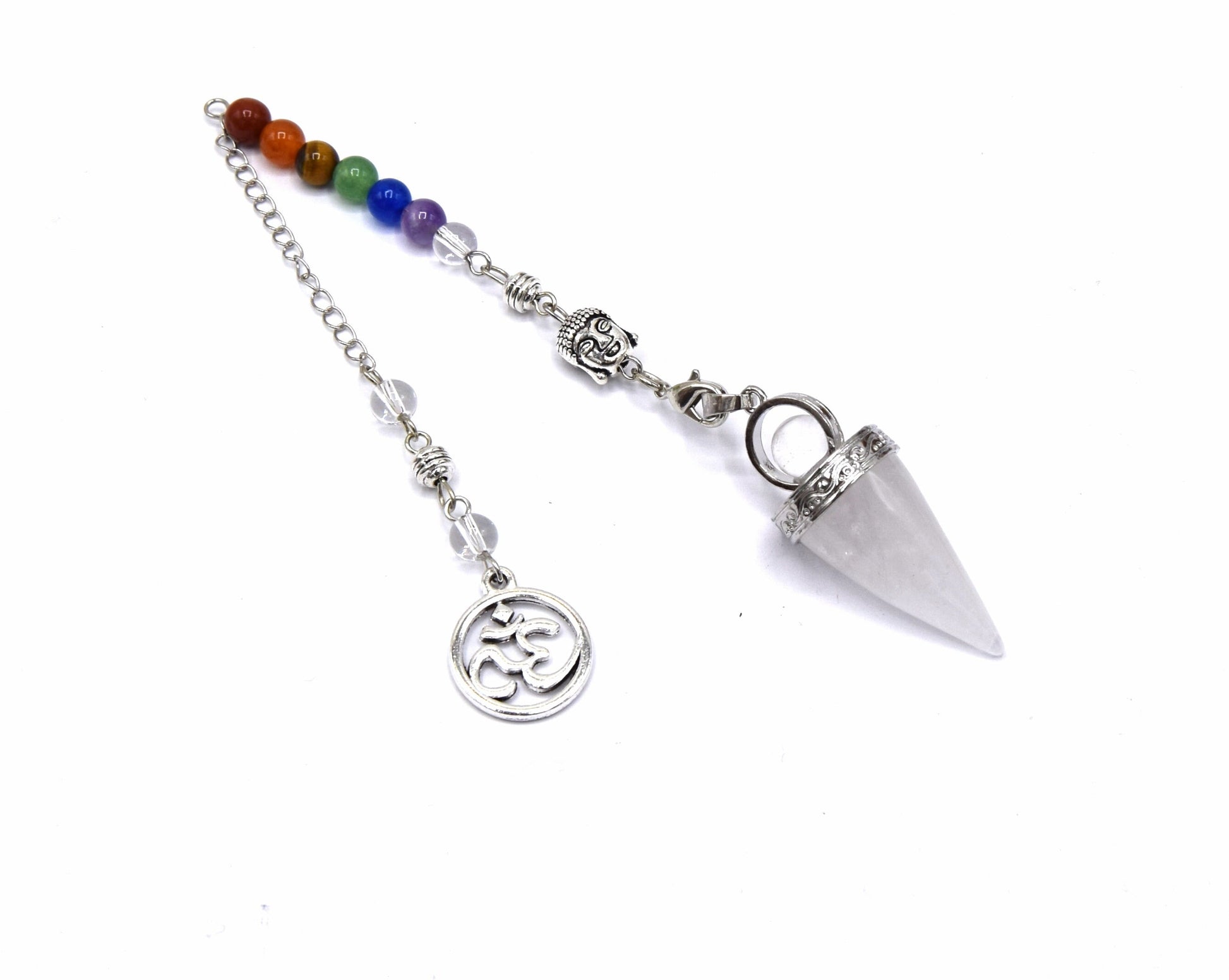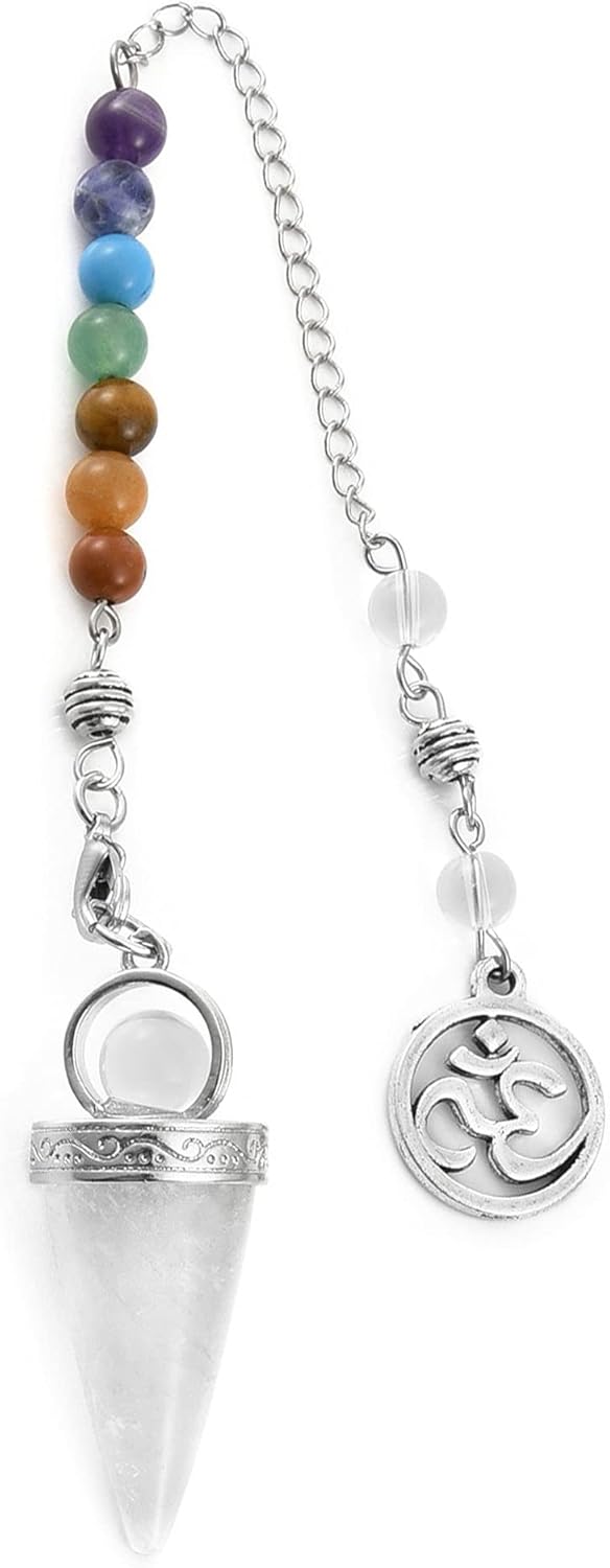 White Crystal Pendulum – 7 Chakra Gemstone Pendant for Reiki, Healing & Balance